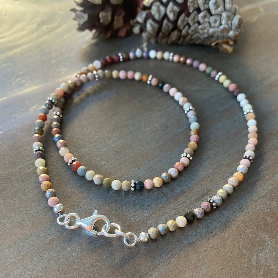 Polychrome Jasper & Sterling Silver Strand Necklace