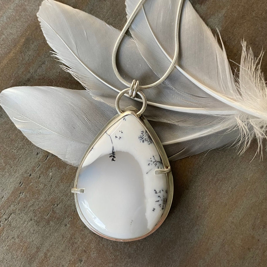 Dendritic Agate Sterling Silver "Snowy Owl" Necklace