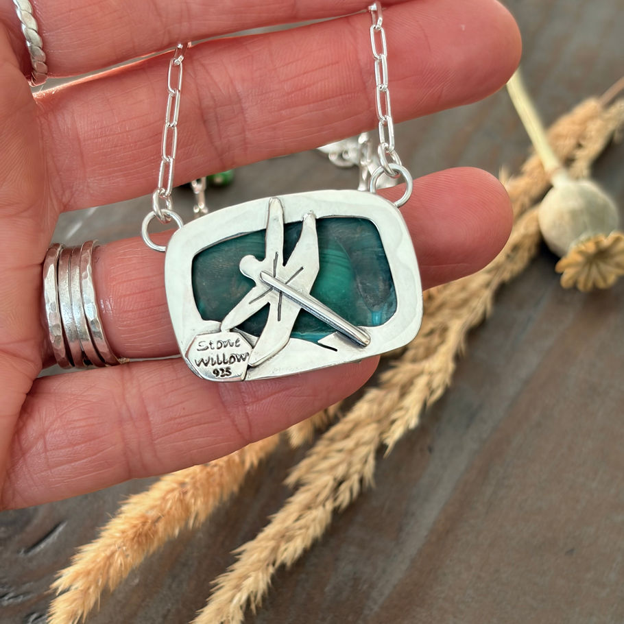 Malachite Chrysocolla Sterling Silver Dragonfly Necklace