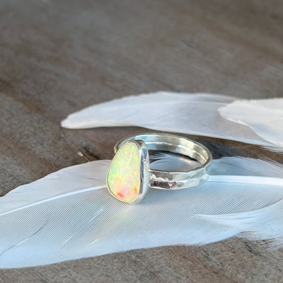 Opals are sensitive to heat and moisture, so please be gentle and care for this stone.
