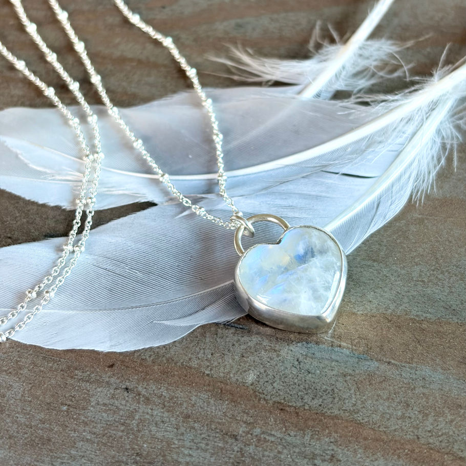 Rainbow Moonstone Sterling Silver Reversible Heart Necklace
