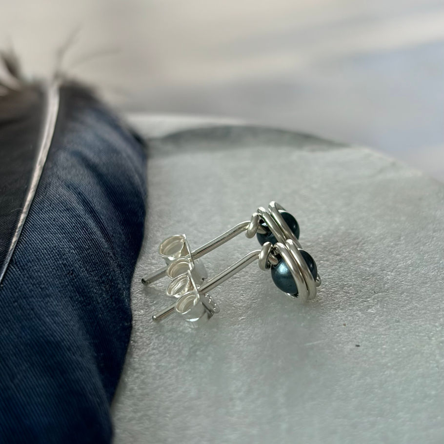 Small Tahitian Blue SwarovskiPearl & Sterling Silver Stud Earrings